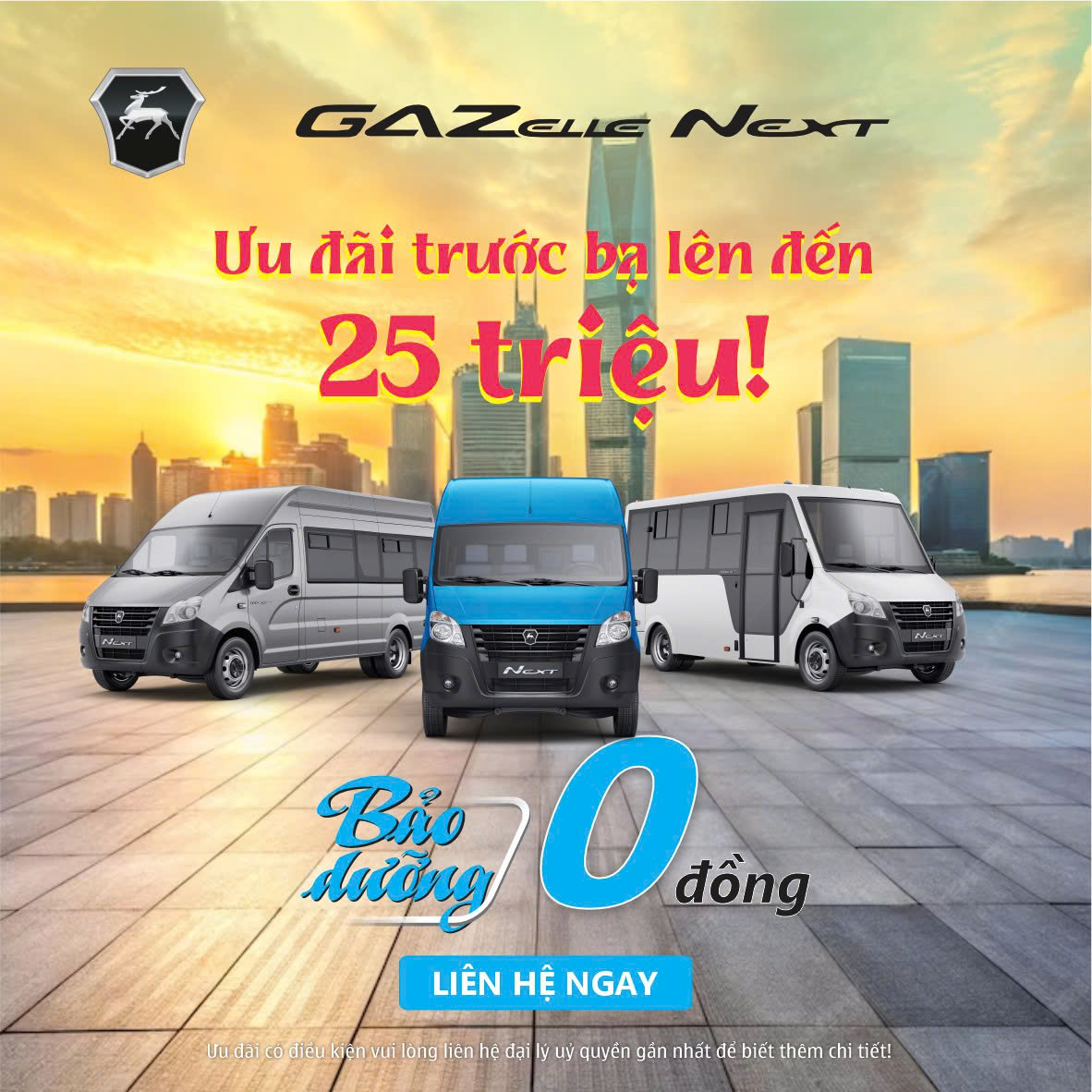 Từ ngày 11/09/2024 đến hết 30/09/2024 Gaz Việt Nam triển khai chương trình ưu đãi 100% Lệ Phí Trước Bạ, cùng gói bảo dưỡng miễn phí 03 lần đầu áp dụng cho tất cả các khách hàng mua xe Gaz trên cả nước.